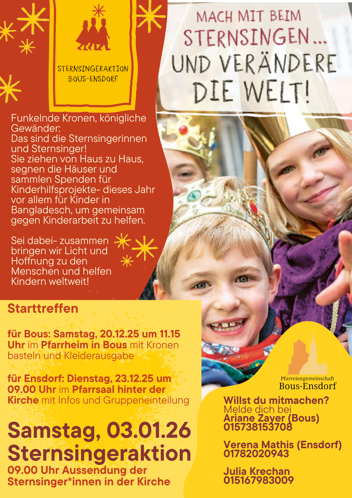 MACH MIT BEIM STERNSINGEN ... UND VERÄNDERE DIE WELT!:STERNSINGERAKTION BOUS-ENSDORF